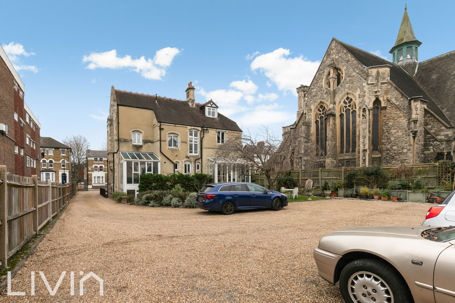 Outside, the building sits within attractive grounds with a generous gravelled parking area, adding everyday convenience to this unique home. A fantastic option for anyone seeking character, light and outdoor space in a distinctive period conversion, well placed for local amenities and East Croydon Station