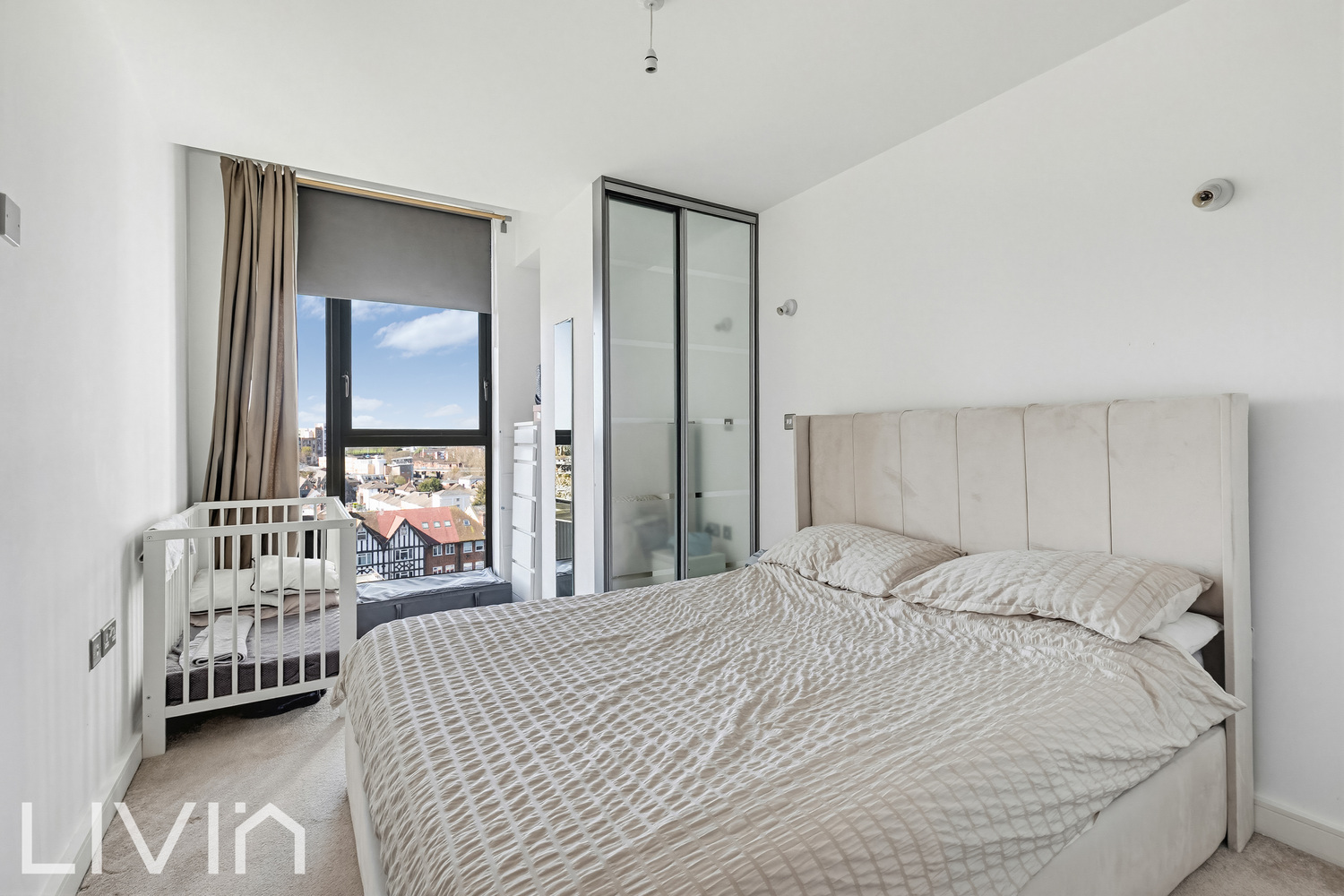 A bright and contemporary apartment set within a modern development, offering stylish open-plan living and far-reaching views from an elevated position.