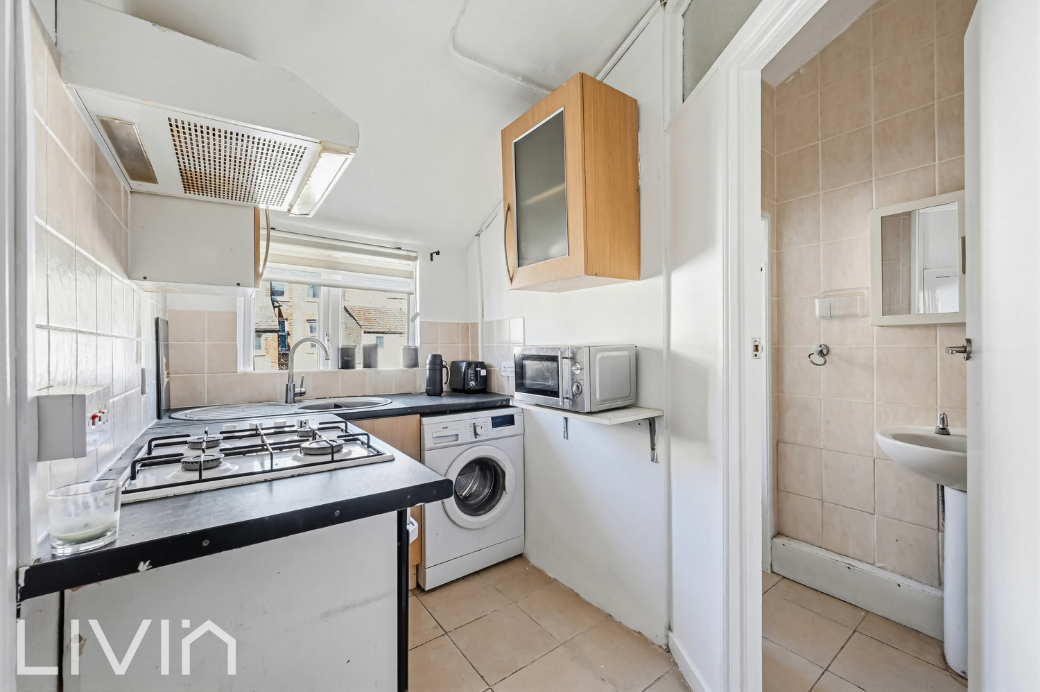 The property features a bright and spacious reception room, providing a versatile area for both relaxing and dining. Large windows allow for plenty of natural light, while the neutral décor creates a blank canvas ready to personalise. The adjoining kitchen is compact yet well laid out, offering essential appliances and direct access to the rear garden.