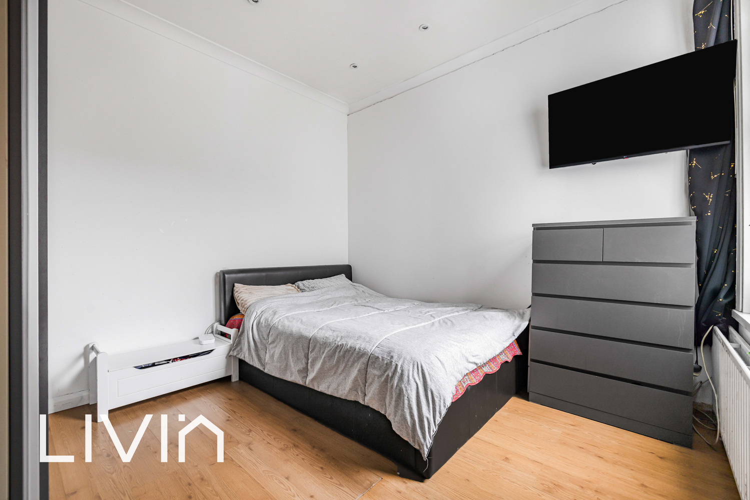 The bedroom is well-proportioned and positioned toward the rear of the property, providing a peaceful retreat. It comfortably accommodates a double bed along with additional bedroom furniture and benefits from good natural light.