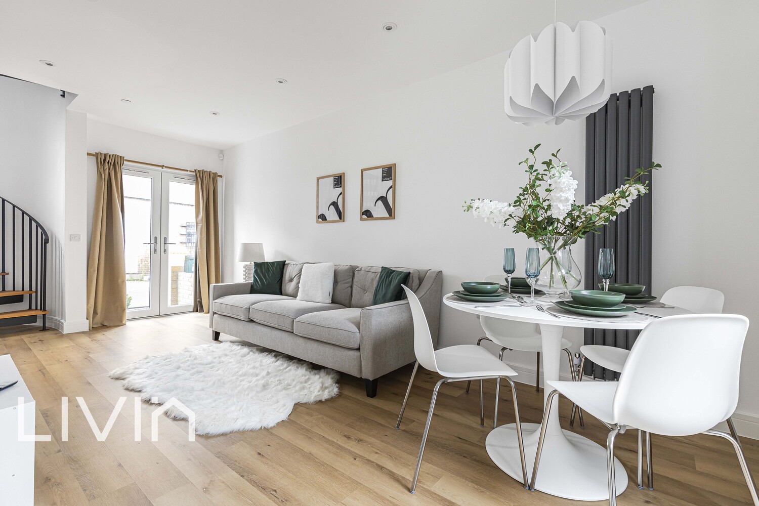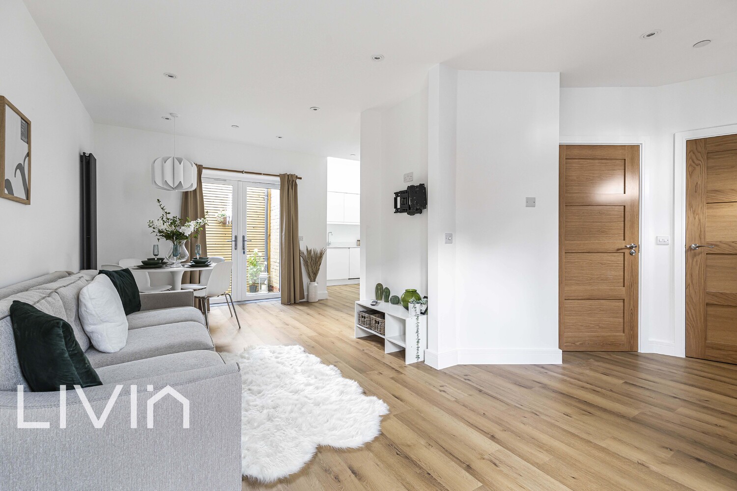 A contemporary end-of-terrace two-bedroom home offering stylish interiors, outdoor spaces, and convenient amenities within a private gated setting in Selsdon.
