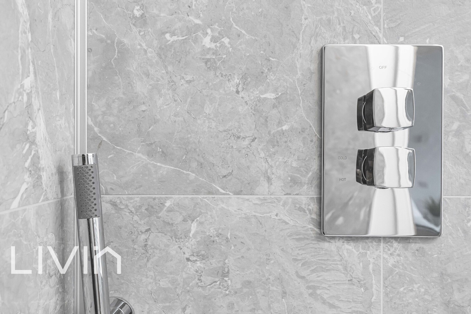 Both bedrooms are generously proportioned, complemented by two elegant bathrooms and a dedicated dressing area, ensuring both comfort and convenience.