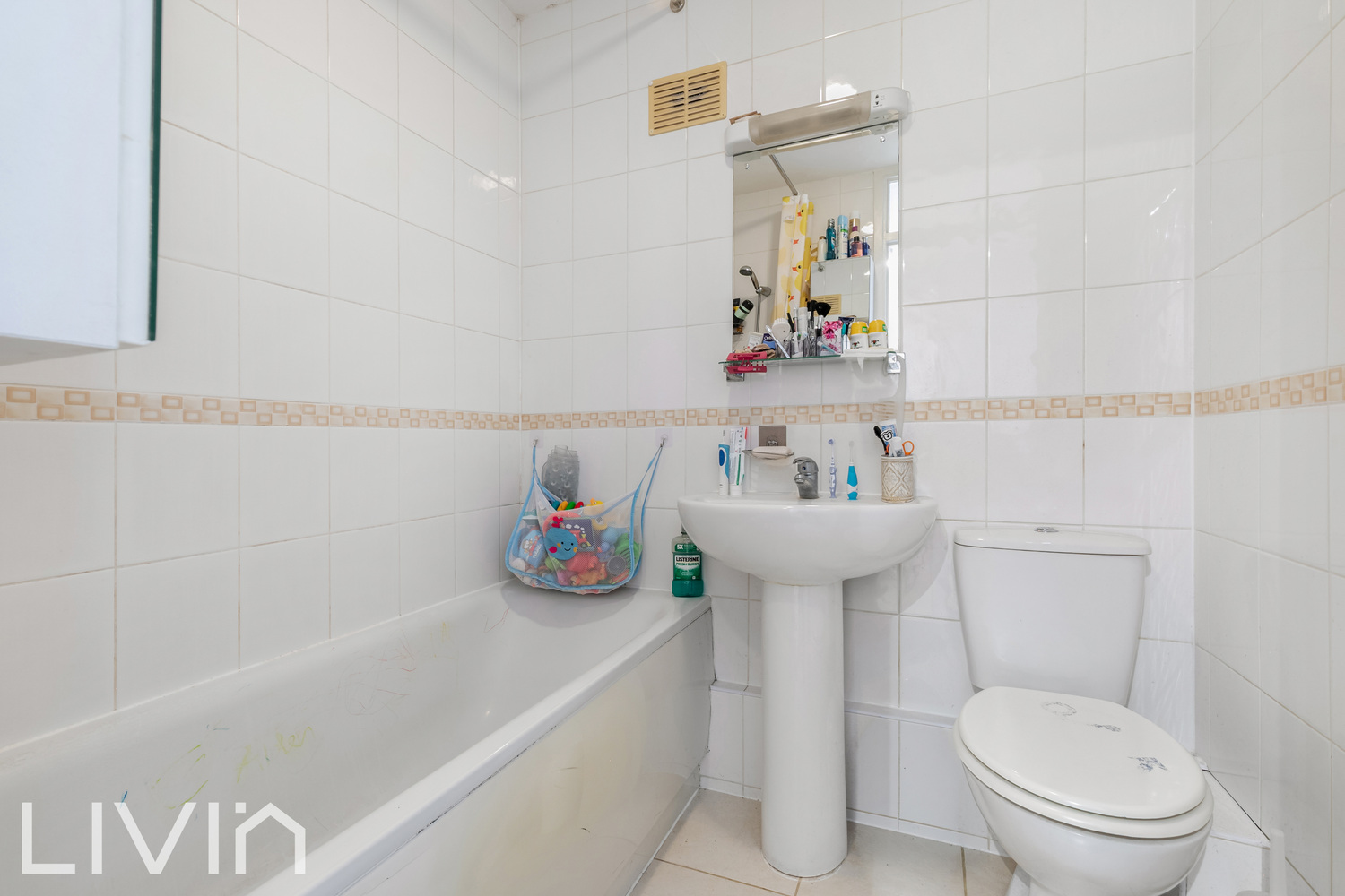 Both bedrooms are comfortable doubles, each enjoying big windows and a calm, neutral finish that’s ready to make your own. Completing the accommodation is a clean, fully tiled bathroom with a full-sized bath and shower over, plus useful hallway storage to help keep everything neatly tucked away.