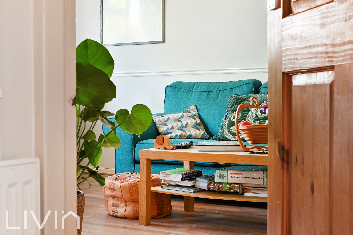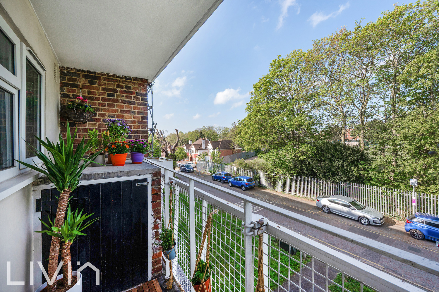 The heart of the home is a generously proportioned reception room, filled with natural light and offering ample space for both relaxing and dining. A door leads out to a private balcony, where you can enjoy a pleasant outlook over greenery—an ideal spot for morning coffee or unwinding at the end of the day.