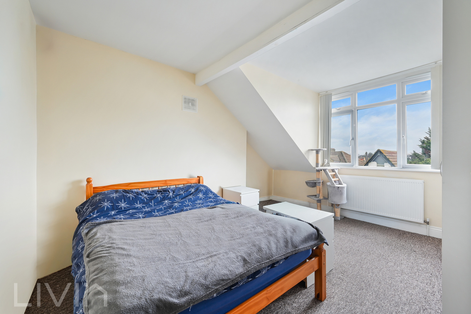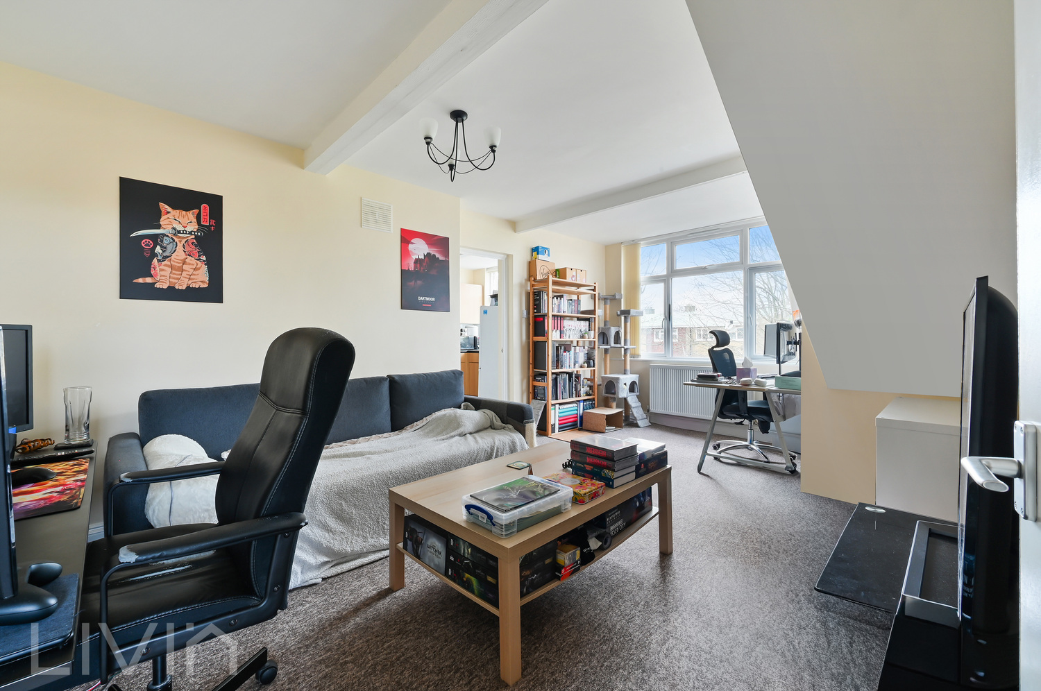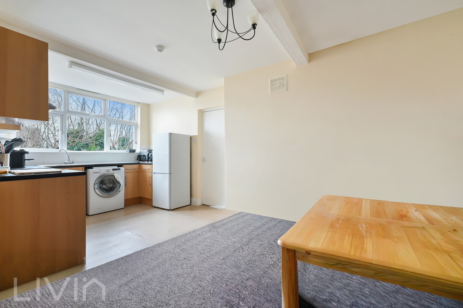 The separate kitchen provides excellent worktop and storage space, with a large window bringing in daylight and room to comfortably accommodate everyday cooking as well as a small dining set-up. It’s a functional, sociable space that works well for modern living.