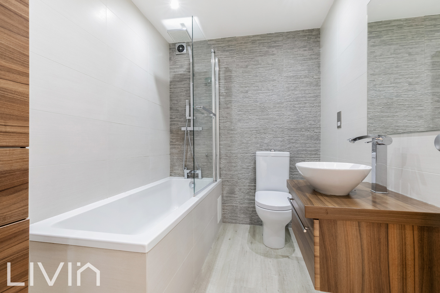 The property has two good-sized bedrooms, with the main bedroom benefiting from an en-suite shower room, while the main bathroom is fitted with a bath and an overhead shower, serving the second bedroom and guests