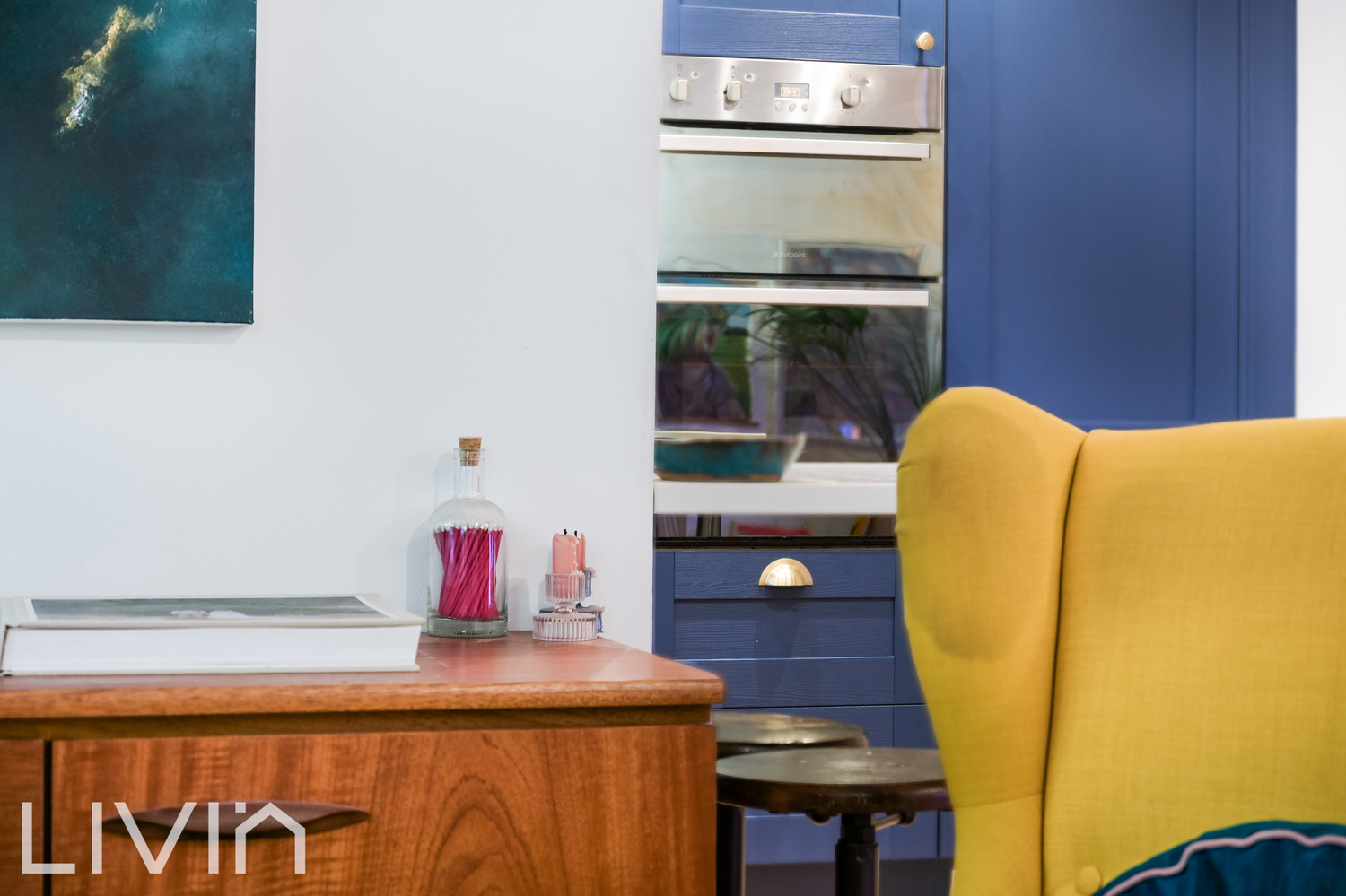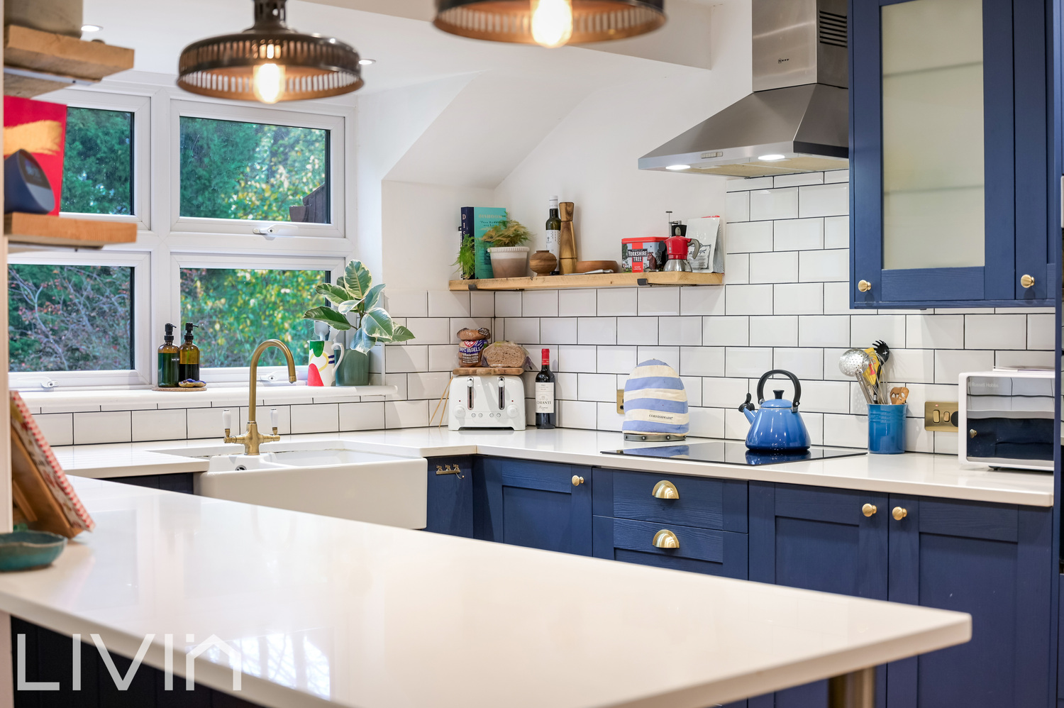 The heart of the home is a generous open-plan living space — bathed in natural light from twin dormer windows and finished with elegant oak flooring. The sleek navy shaker kitchen features quartz worktops, brass accents, integrated appliances, and a sociable breakfast bar, creating a perfect space for cooking, dining, and relaxing.