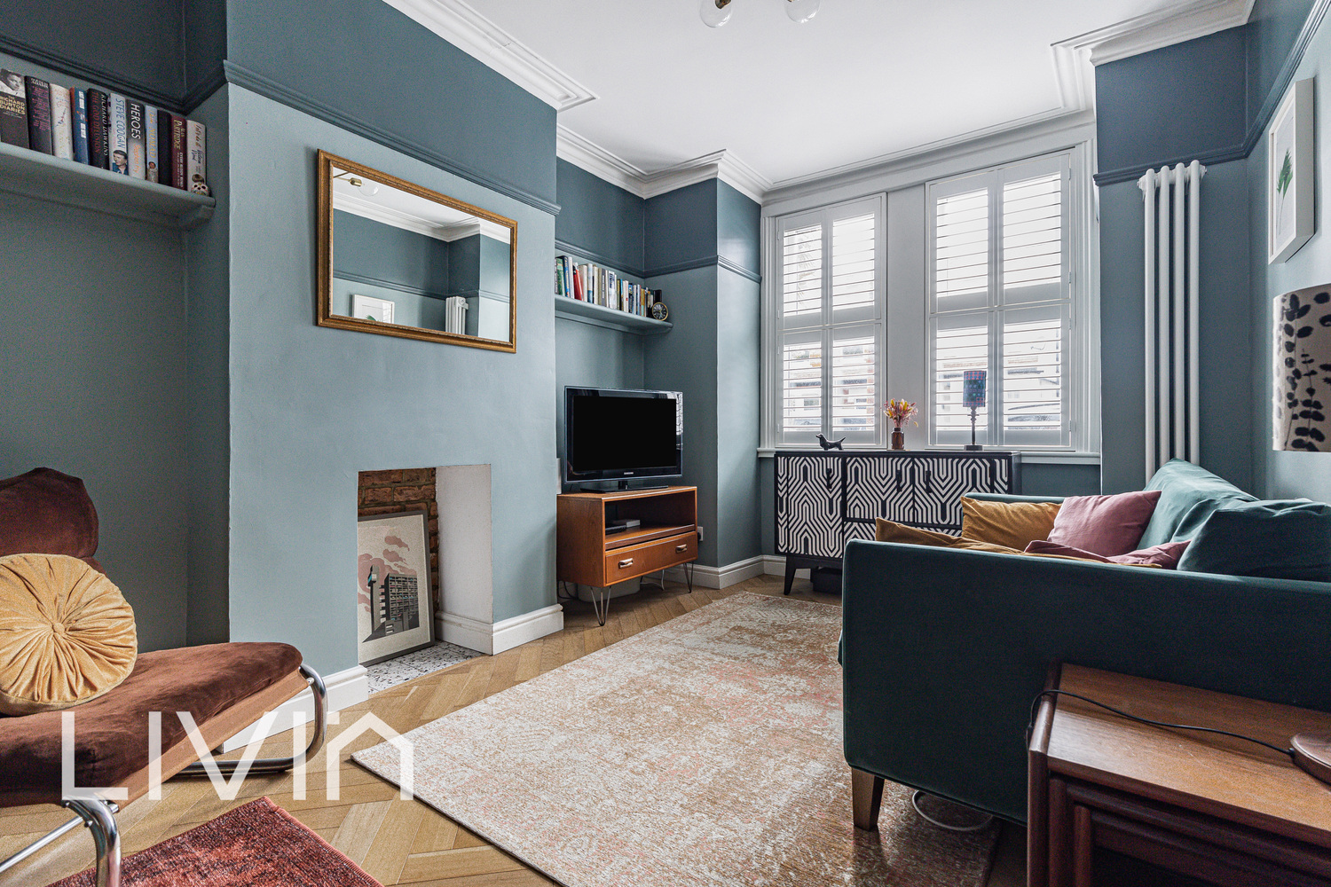 To the front, the attractive brick façade and charming bay window create immediate kerb appeal, while inside the property continues to impress. The reception room is a cosy yet elegant space, tastefully decorated with a calm colour palette, bespoke shelving and a feature fireplace, providing the perfect setting to relax or entertain. The layout flows seamlessly through to the rear, where a stunning kitchen and dining area forms the heart of the home. Thoughtfully designed with sleek cabinetry, high-quality fittings and plenty of natural light from French doors opening onto the garden, this space is both highly functional and visually striking, ideal for everyday living as well as hosting guests.