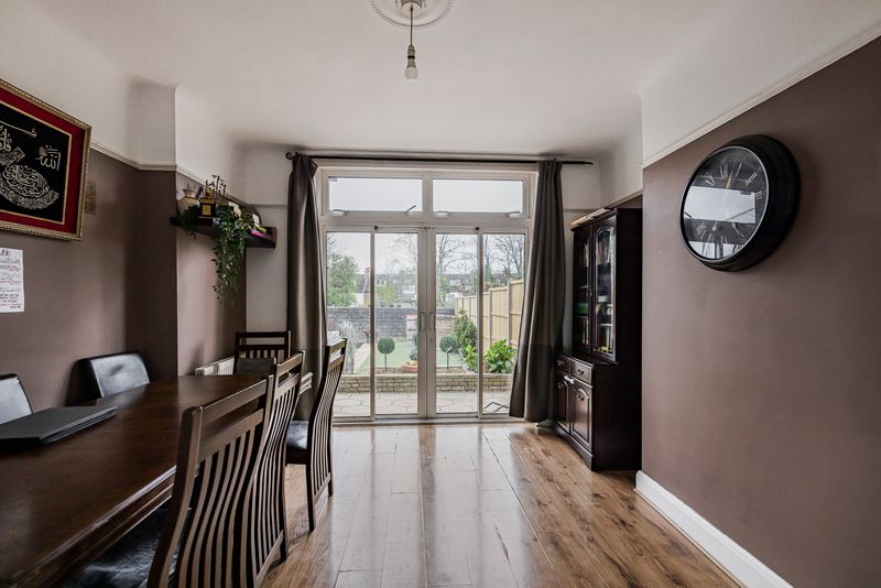 The ground floor welcomes you with a bright entrance hall leading through to a spacious reception room, perfect for relaxing or entertaining. To the rear, a separate dining room enjoys direct access to the garden via large patio doors, creating a seamless connection between indoor and outdoor living. The adjoining kitchen is well arranged with ample storage and worktop space, and also provides access out to the garden, offering scope for modernisation or extension subject to the usual consents.