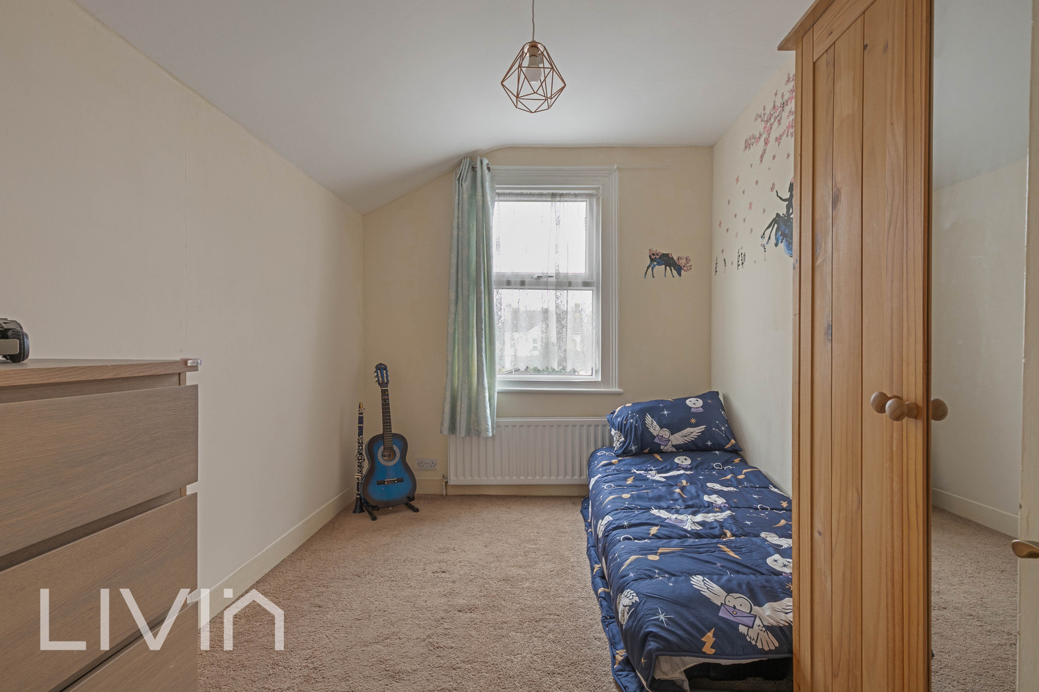 Upstairs, the property offers three well-proportioned bedrooms. The main bedroom is bright and spacious, featuring attractive period character including a decorative fireplace and dual windows that enhance the sense of space and light. The additional bedrooms provide comfortable accommodation and are ideal for children’s rooms, guests, or a home office.