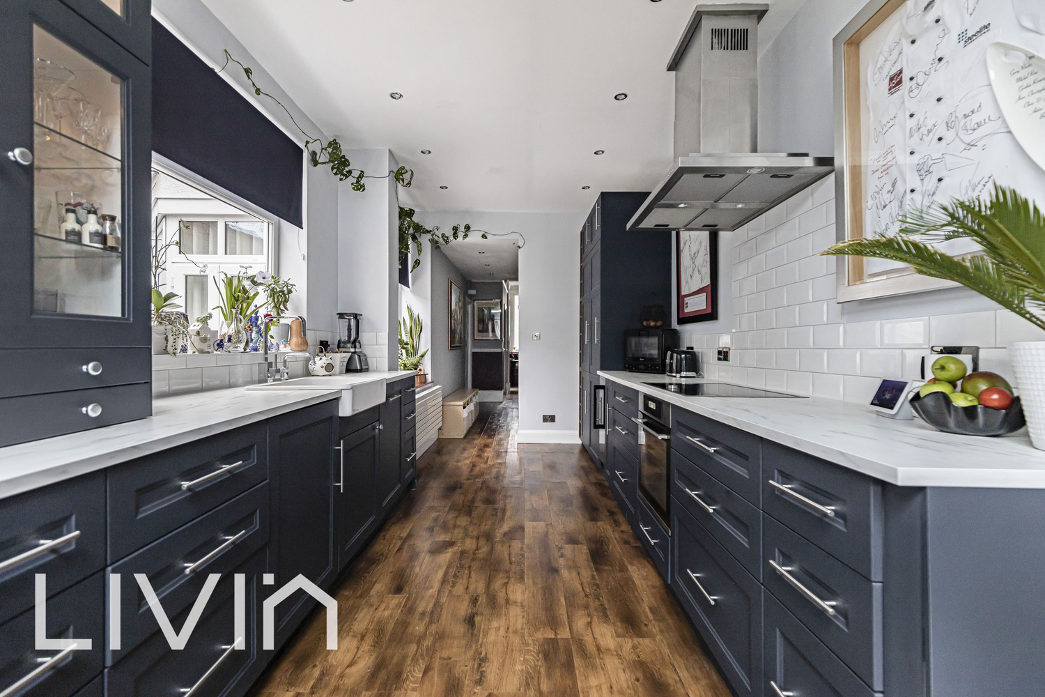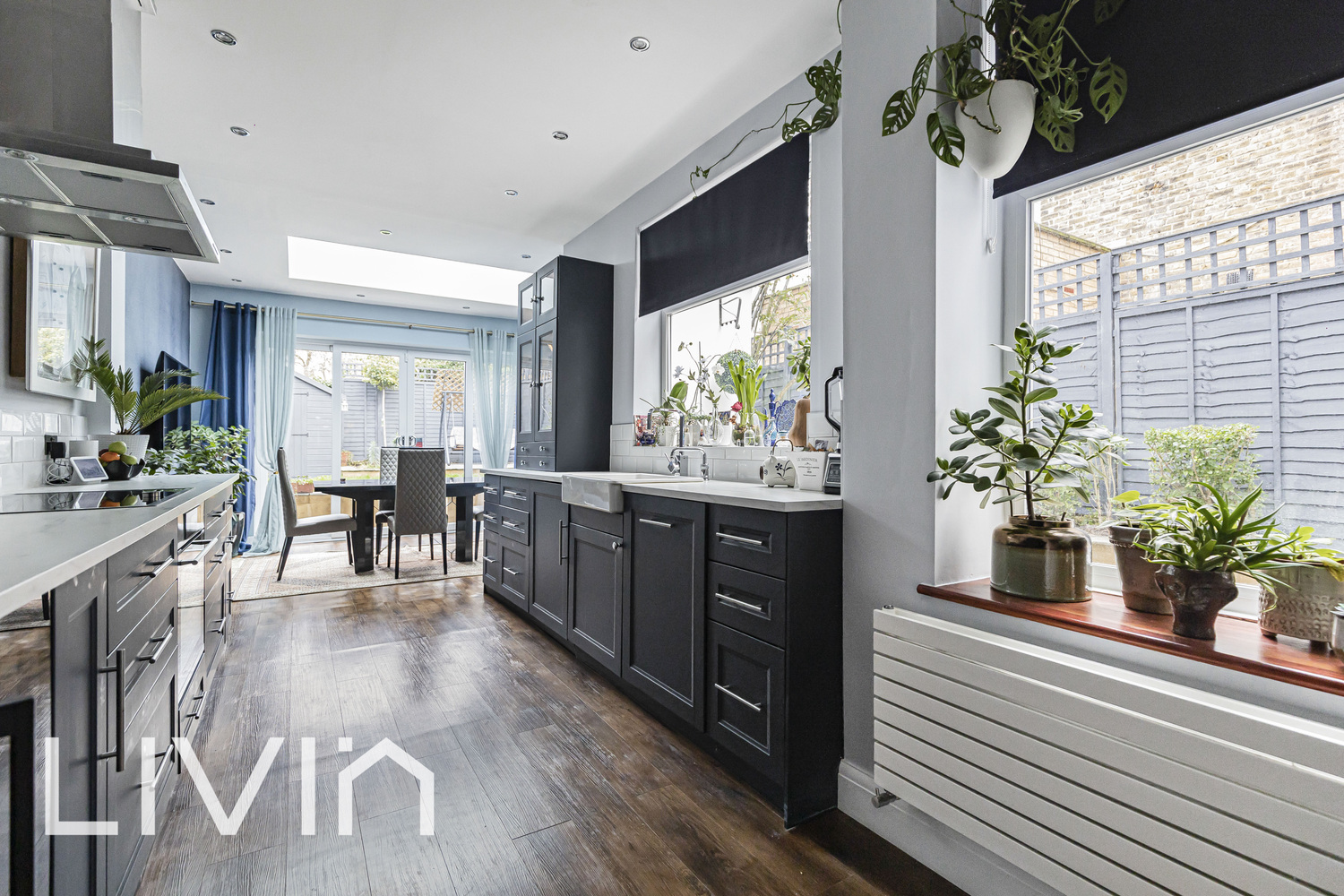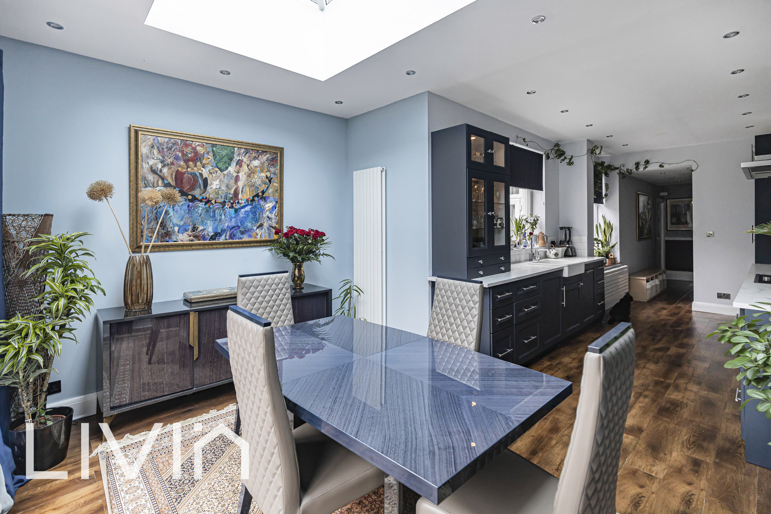 To the rear, the house really comes into its own with an impressive extended kitchen/dining space designed for everyday living and entertaining. Sleek cabinetry, ample worktop space and and wide doors opening directly onto the garden, creating a bright, sociable hub that connects seamlessly to the outdoors.