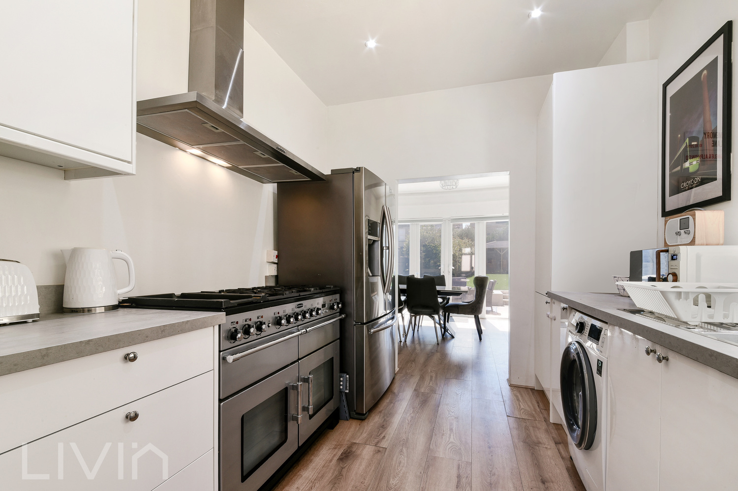 The ground floor welcomes you with a generous lounge, perfect for relaxing or entertaining guests. To the rear, a bright dining room opens onto the garden, seamlessly connecting indoor and outdoor living. The well-appointed kitchen provides plenty of storage and workspace, making it the true heart of the home.